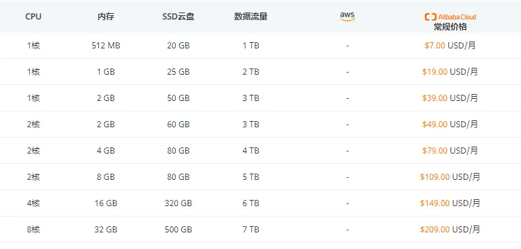 - 1核+512 MB内存+40 GB SSD+1 TB数据流量