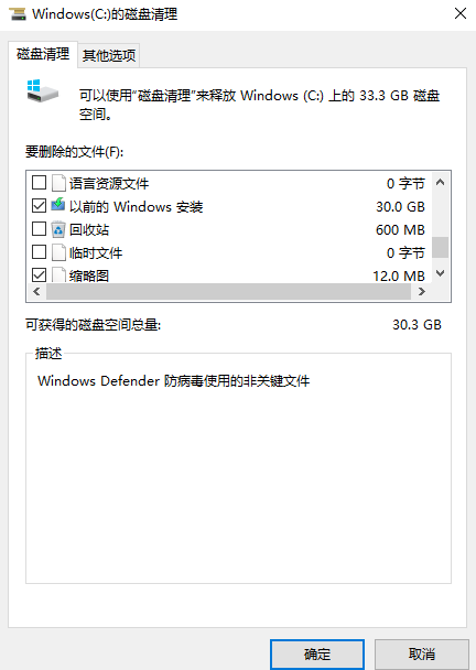 C盘 -> 右键 -> 属性 -> 磁盘清理 -> 清理系统文件 -> 要删除的文件 -> 选择 以前的Windows安装 -> 确定!