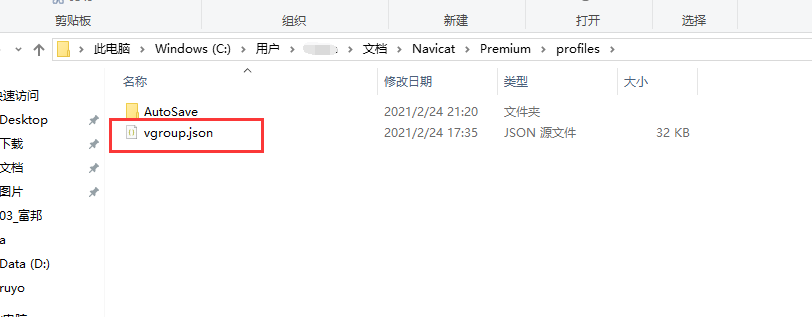2)我们打开指定目录,如图profiles目录存在一个json文件:vgroup.json