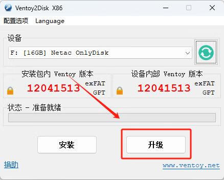 下载最新Ventoy软件,插入已经安装Ventoy的U盘,运行最新Ventoy软件点击升级即可!