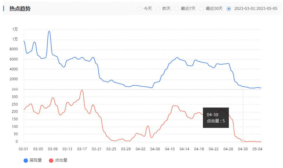 3)百度搜索词情况。3月份降了一波,4月底开始又降一波。