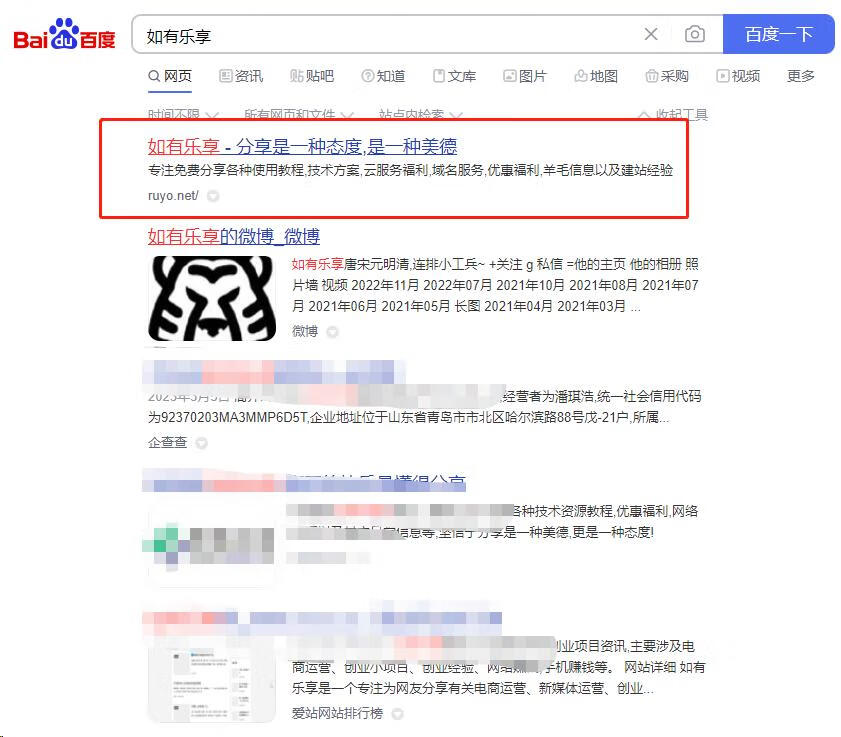 2023年5月9日,百度搜索:如有乐享 能出来首页了。