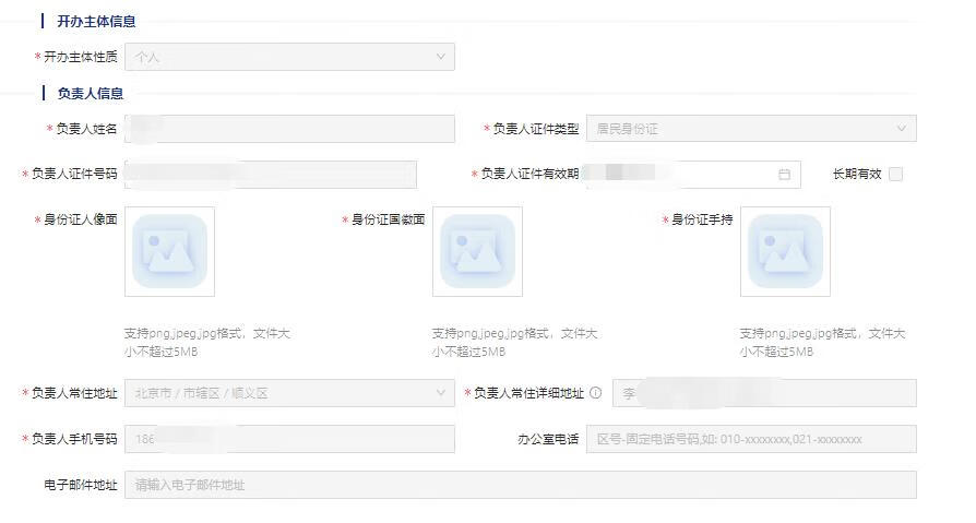 主体性质个人,需要填写个人基本信息,身份证,手持身份证
