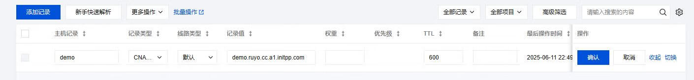 第五步:站点添加成功后,在DNS - 记录 中可指定子域名代理加速源站。