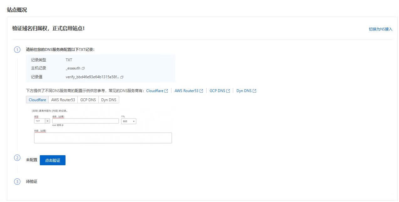 管理面板访问:https://esa.console.aliyun.com/siteManage/