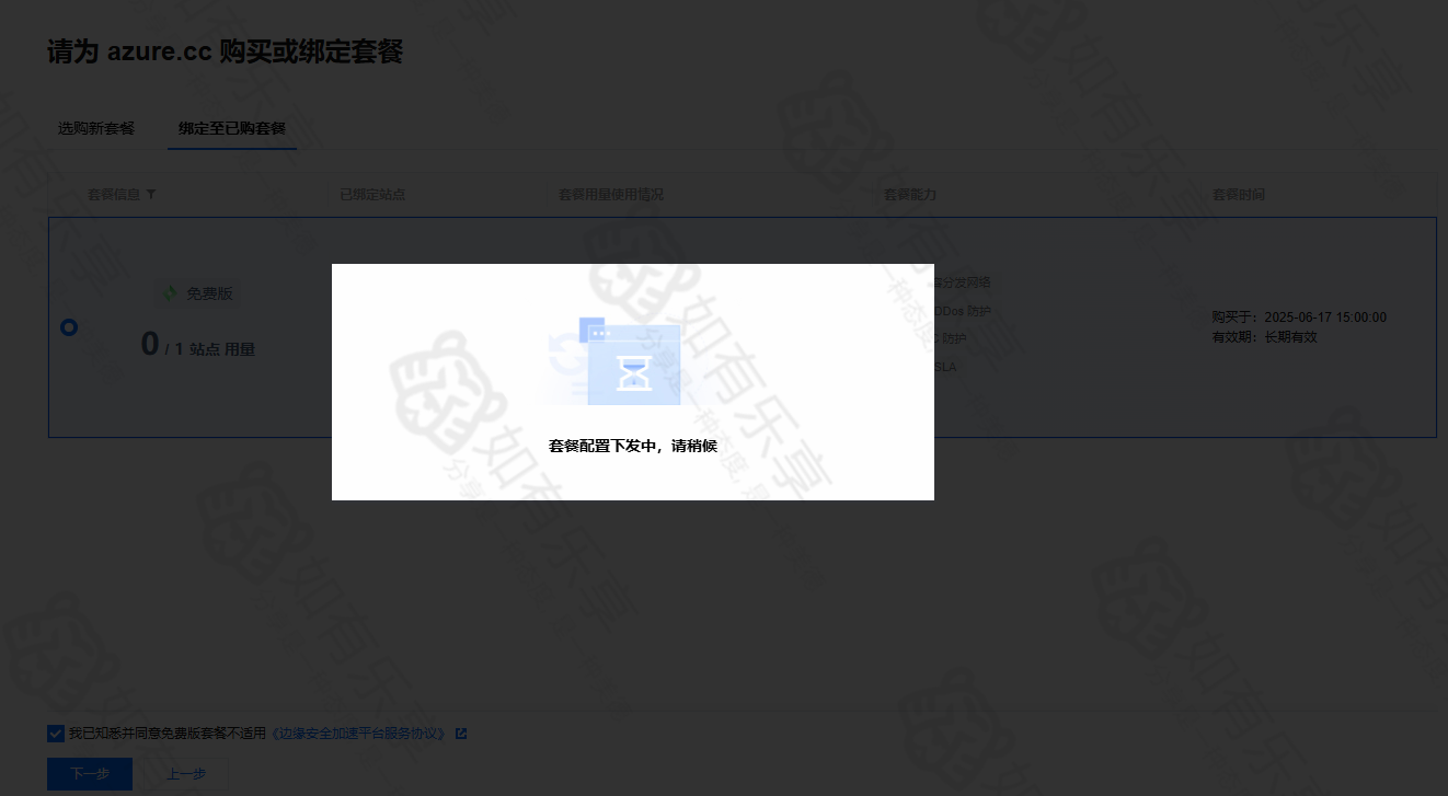 第二步:绑定已经拥有的免费版。点击下一步后稍等一会!