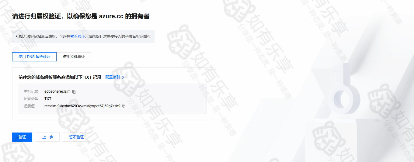 第四步:验证域名所有权,添加TXT记录即可!或者采用文件验证也行!