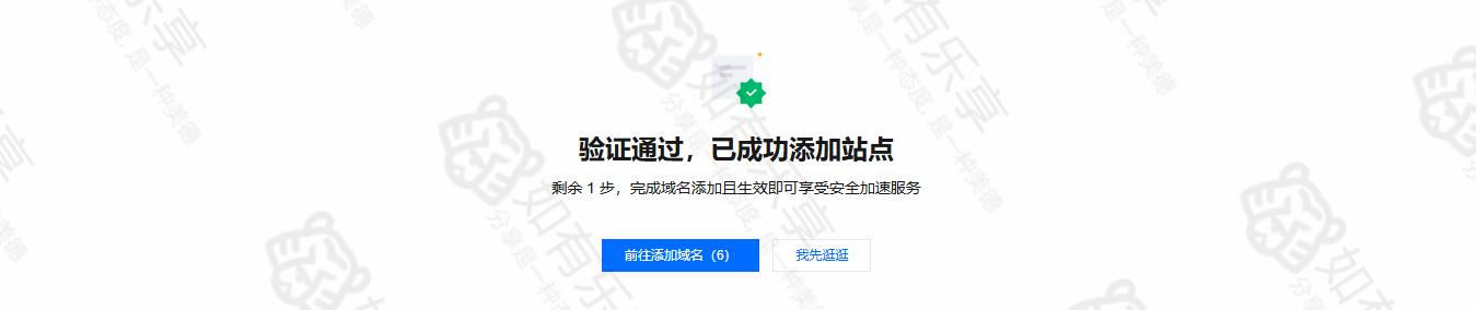 第一步:站点添加成功后,可点击【前往添加域名】直接添加域名!