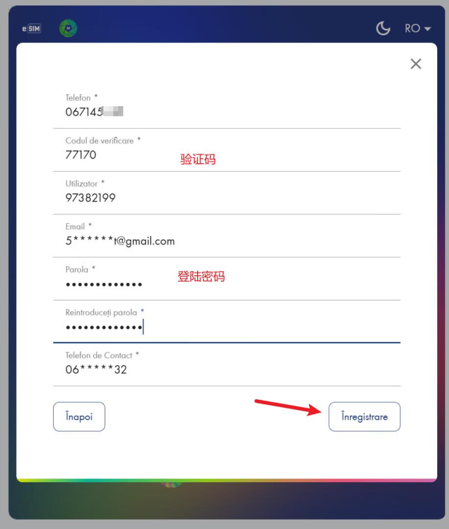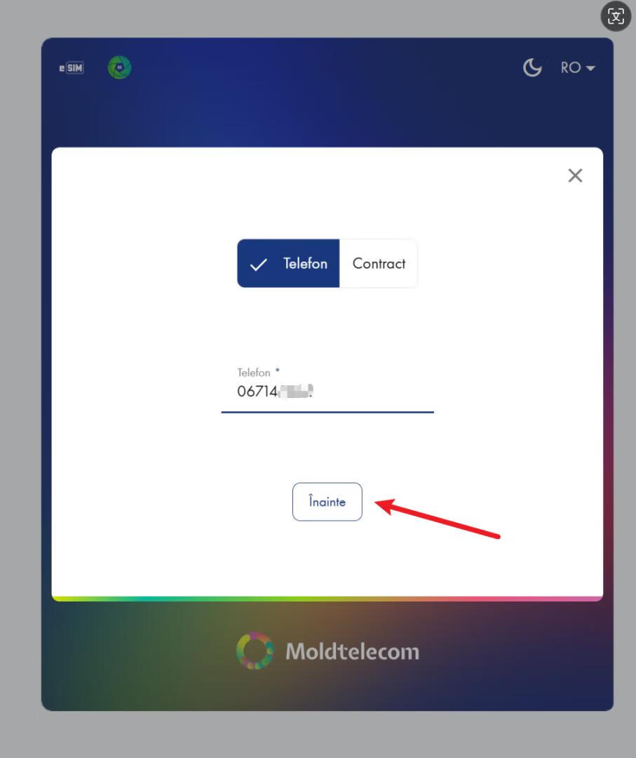 第一步:进入:https://my.moldtelecom.md/my-moldtelecom/login,点击:Înregistrare,然后输入购买的电话号码,接收验证码