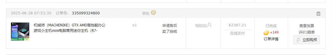 于是一直关注了这款机械师的小主机,正好前几天有国补,个人感觉价格很合适!