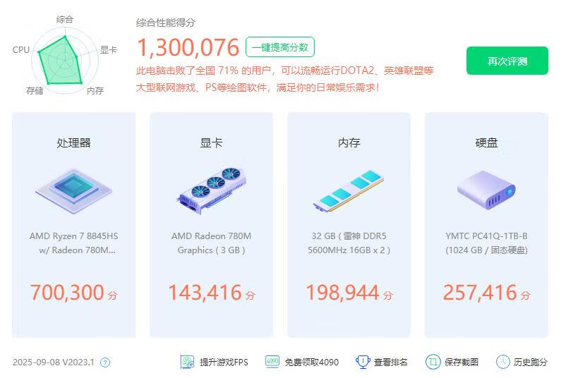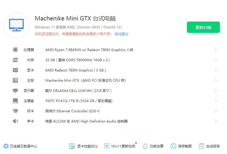 已入机械师小主机锐龙R7 8845HS,32G内存,1TSSD,仅2387元