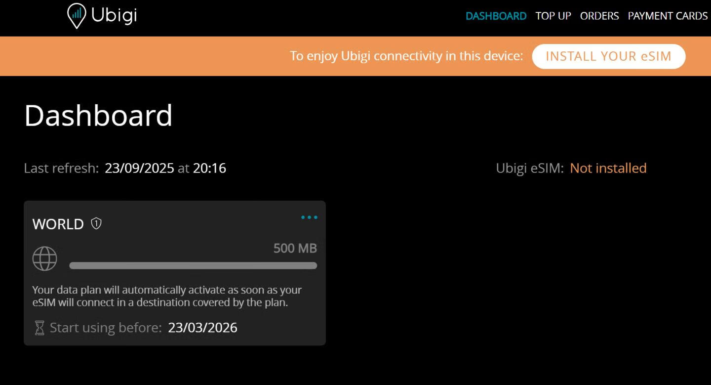 这里推荐注册ubigi 免费500M流量的eSIM,有效期半年!