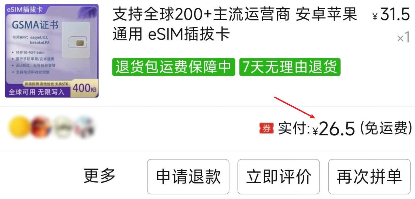 这里推荐一种eUICC卡仅26元还包邮!实测性价比还是不错的!