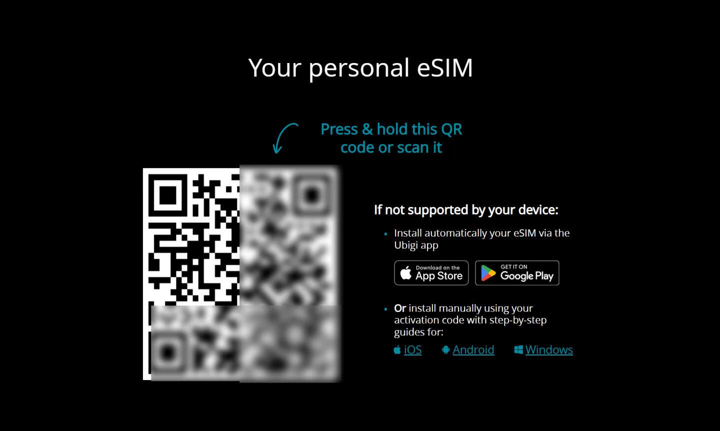 5,点击 【INSTALL YOUR eSIM】获取eSIM的二维码!