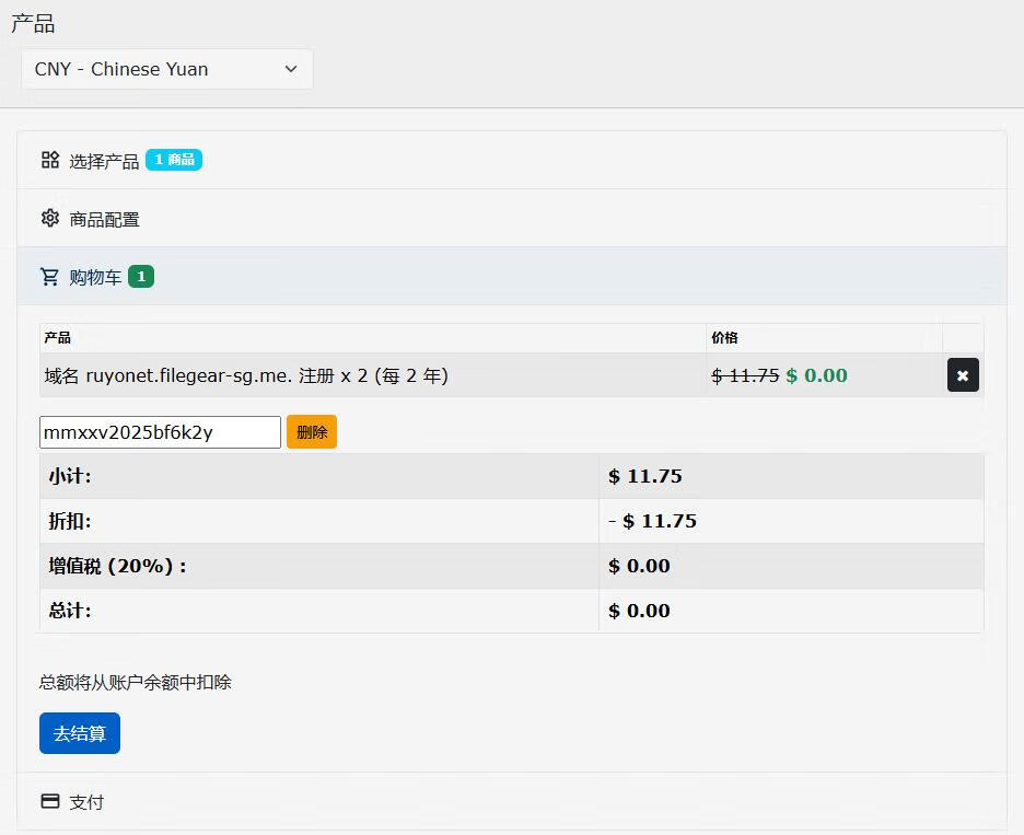 4,目前可用的2个优惠码,可下单一个2年期限域名 和 一个1年期限域名