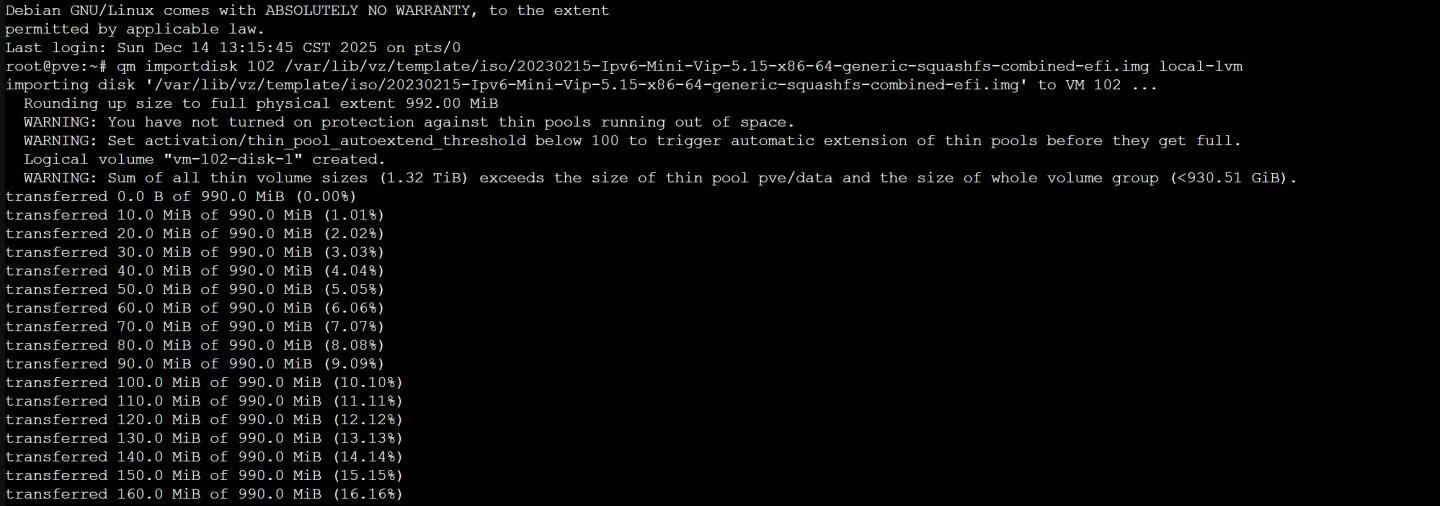 qm importdisk 102 /var/lib/vz/template/iso/xxxxxx.img local-lvm