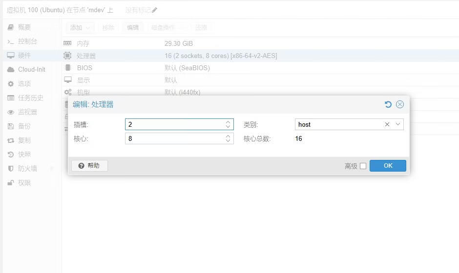 我使用的是Proxmox VE创建的虚拟机默认是KVM 不行!