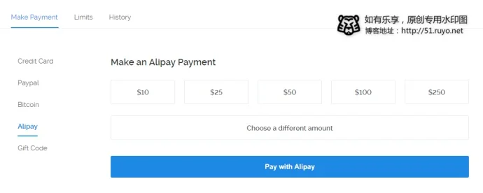 2017年8月30日16:50:44 更新:Vutrl又支持支付宝付款了,最低10美元。不需要发工单开通了。