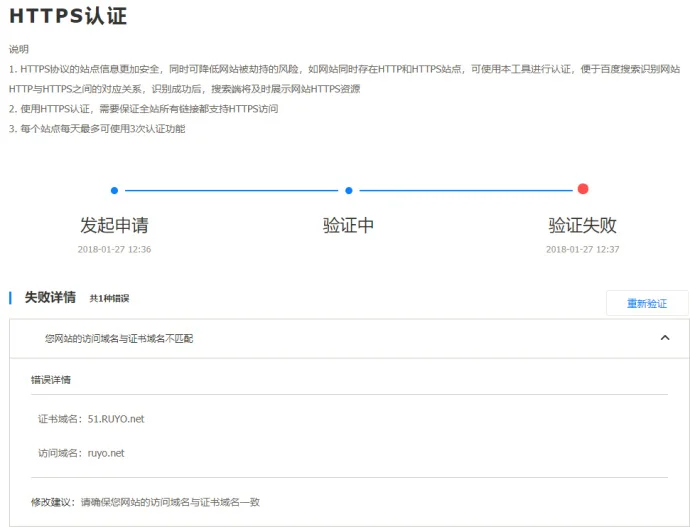 1)由于本博使用的二级域名。在百度站长平台做 HTTPS认证出错!!