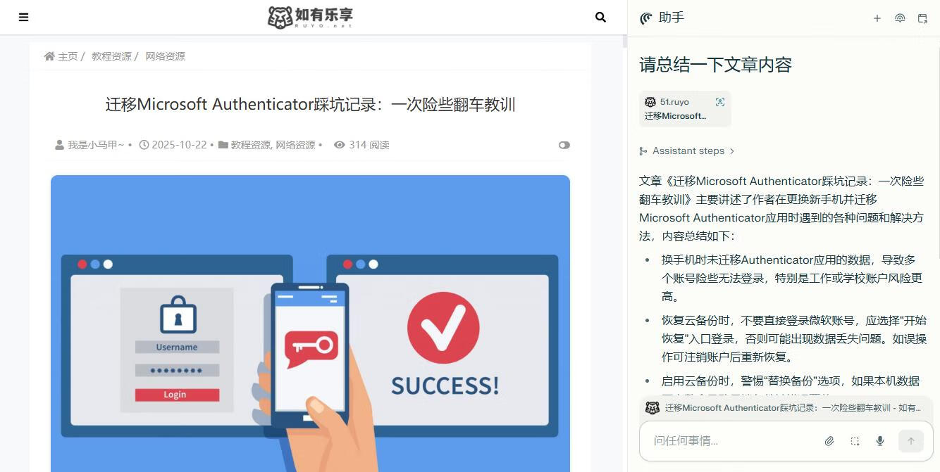 体验后的感觉能用,但是没有让人感到惊艳。因为像一些文字总结啥的其他AI扩展也早已经支持。不过这个助手请求部分网页依赖本地网络。